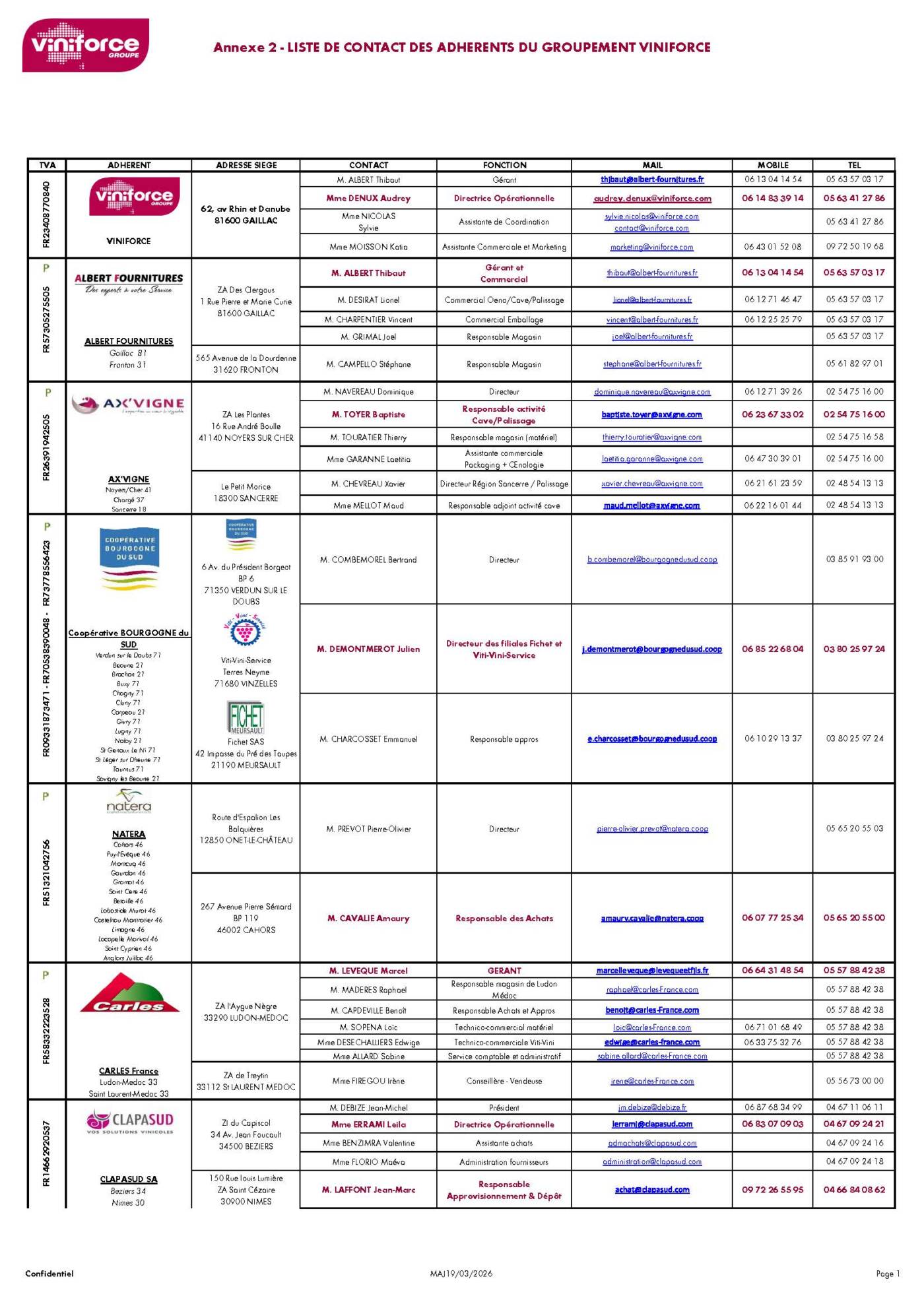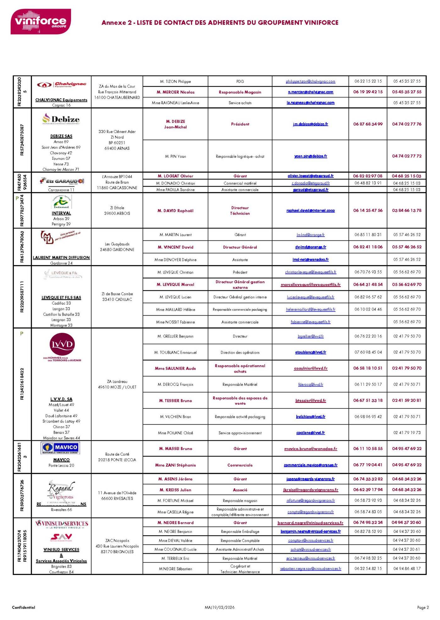 Contacts adhérents